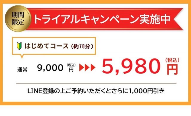 初めてのところは何かと不安がおありだと思いますが、当院ではお得な初回キャンペーンもご用意しておりますので、『まずはお試し』のつもりでお気軽にご連絡していただければと思います。